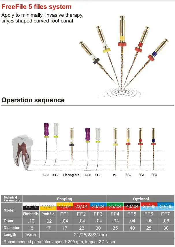 Dental tooth Endo Rotary File Freefile 5 files systems