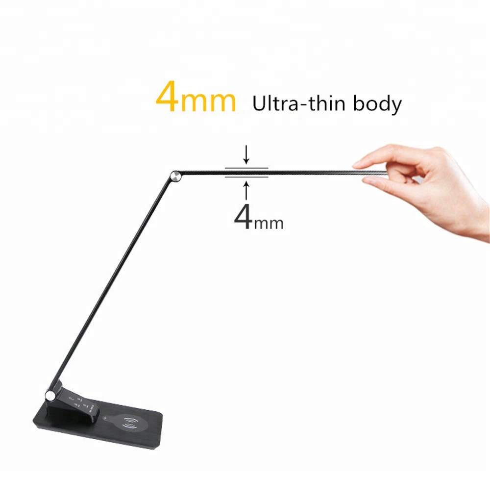 LED Desk Lamp, Metal office light, Sensitive touch control, 5V/2A USB port charger, and a wireless charger.The eye-caring desk lamp is a new generation of innovative products for worker.
