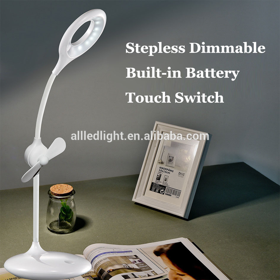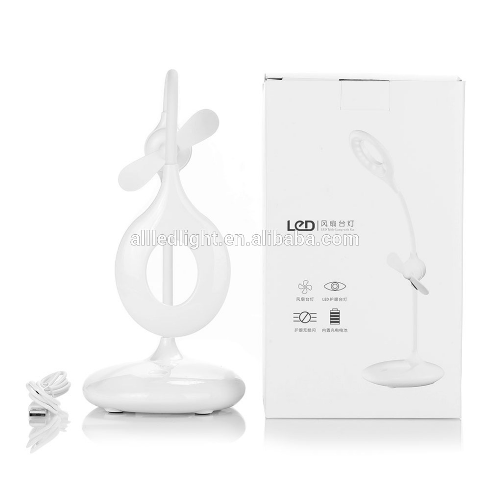 USB Fan with Rechargeable LED Table Lamp Desk Light Eyesight Protection to Children for Study Dormitory