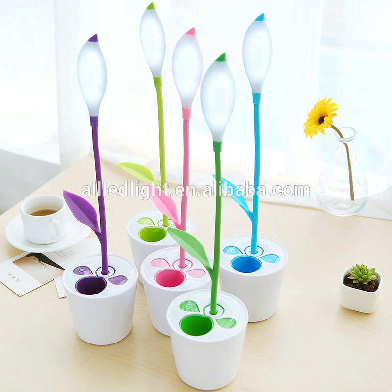 USB LED Desk Lamp 3-Level Dimmer Flexible Table Light with Touch-Sensitive Switch Built-in Battery and Plant Pencil Holder (Dark Green)