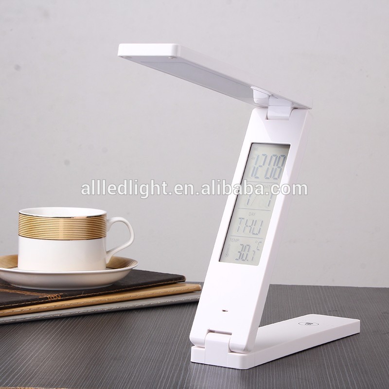 Free shipping Mini Portable LED Light With Calendar Alarm Colck Folding LED table Desk Lamp