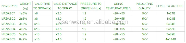 Portable Dry Powder Fire Extinguisher Parameters: