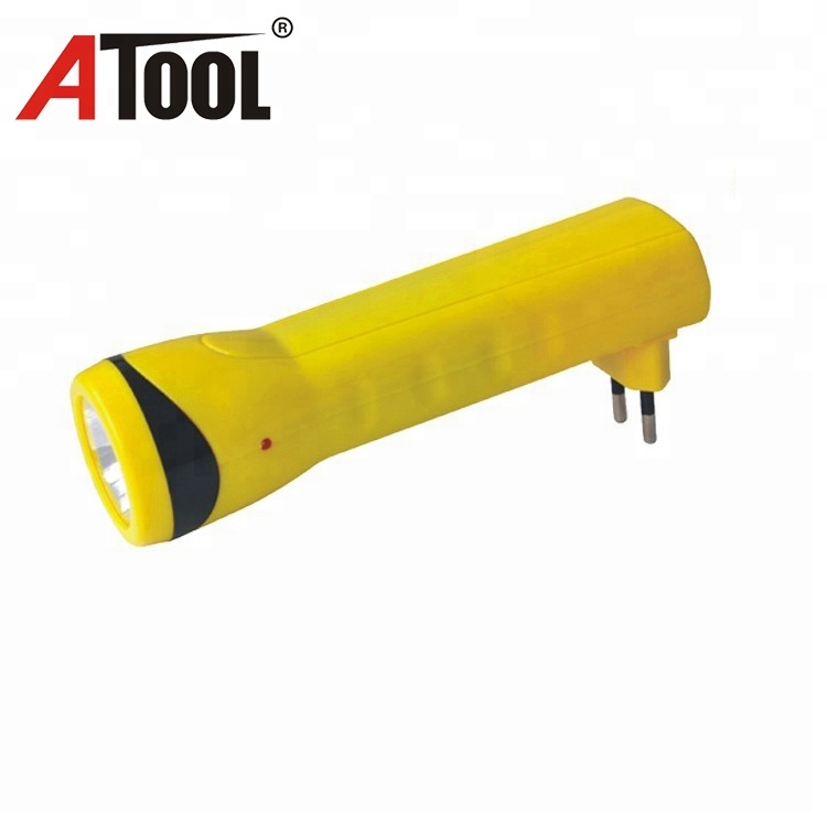 - Hot selling portable ABS plastic rechargeable Brazil plug led torch flashlight