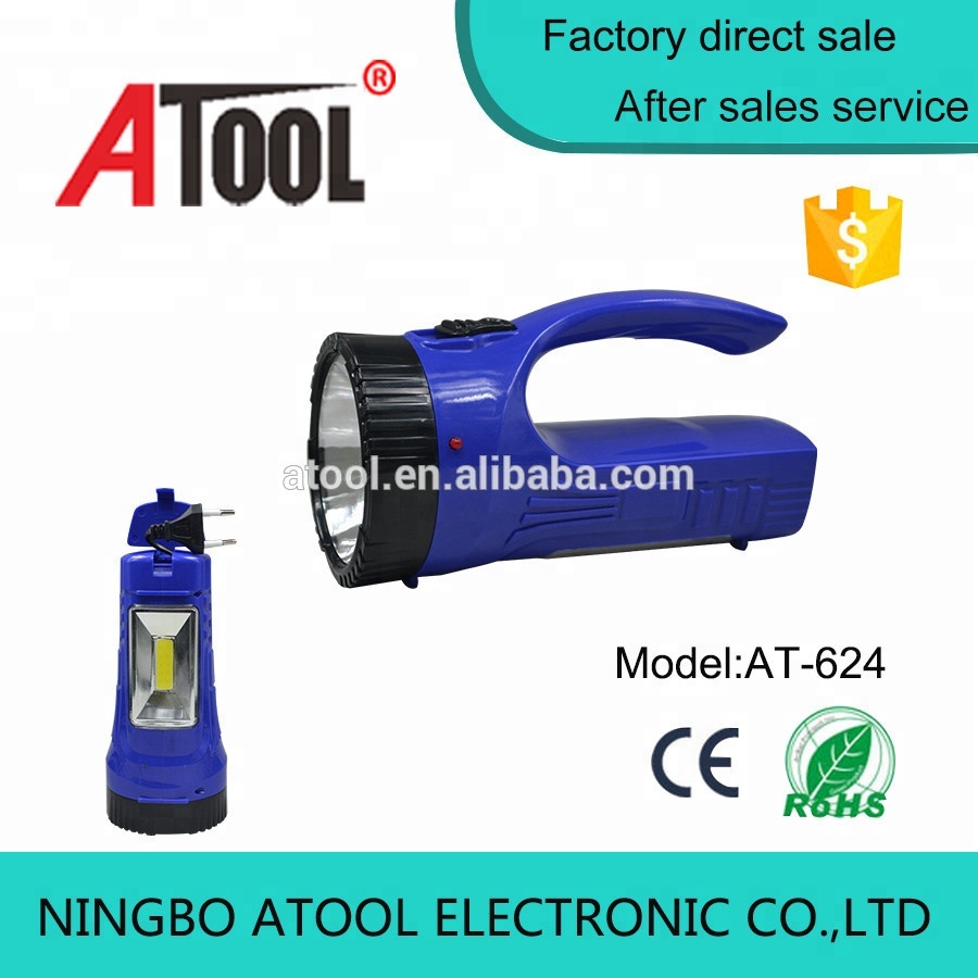 - ATOOL 4v 500mah plastic rechargeable searchlight led torch flashlight with COB