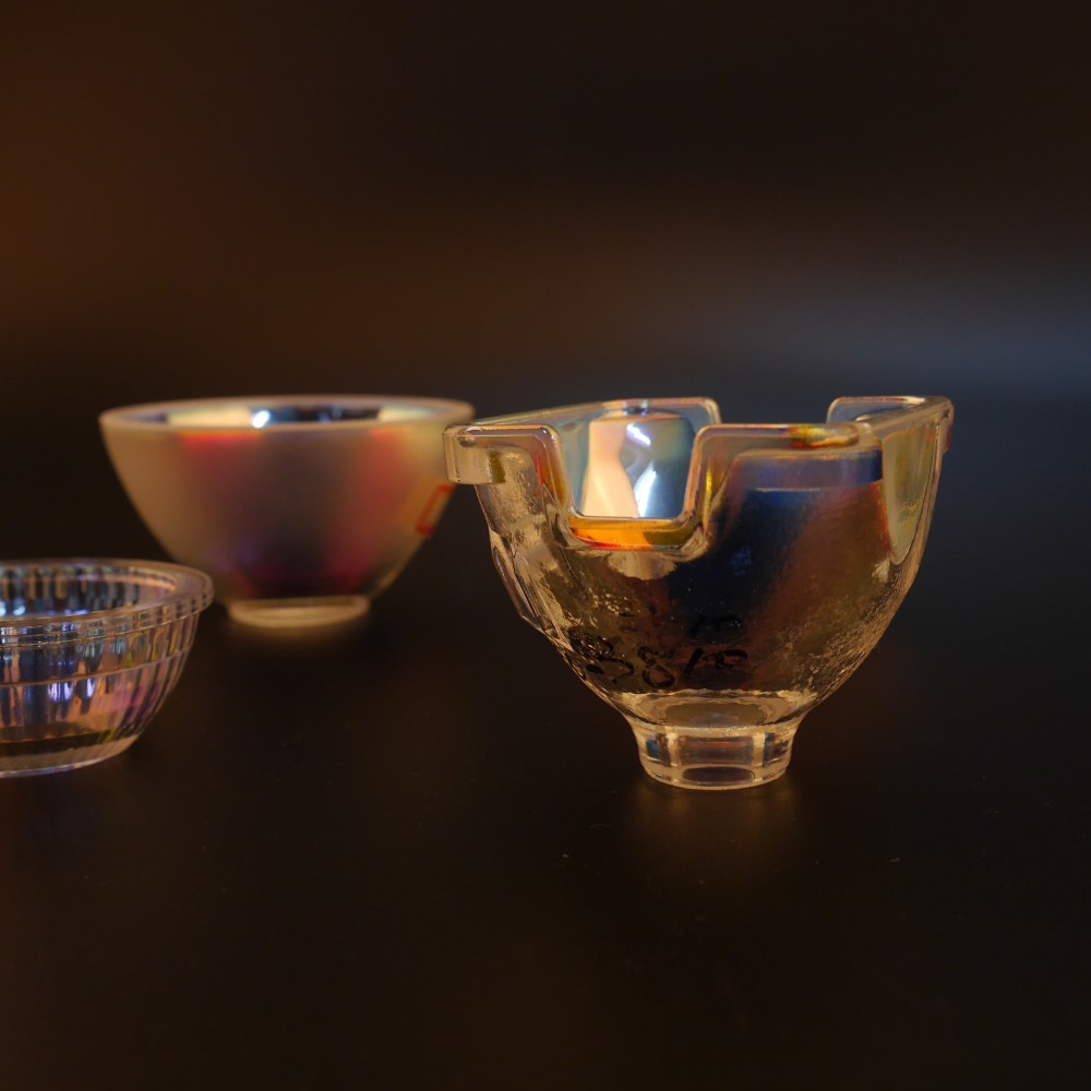 Detailed images of Hot sale borosilicate glass reflector bowl with reflective film coating