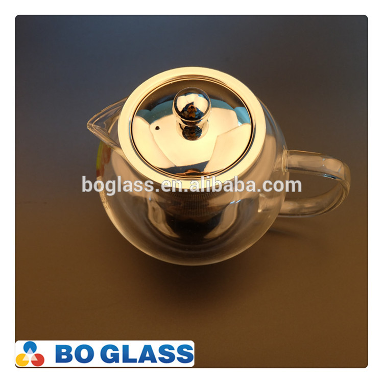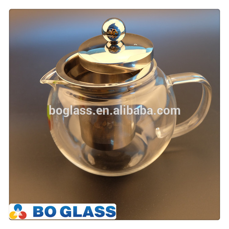 good quality hot sales pyrex glass tea pot with stainless steel strainer
