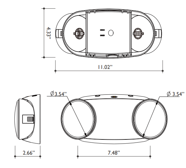 Fully adjustable emergency light with energy-saving LED lamps in an economical package. Long lasting, low maintenance NiCad battery. No heavy, short-lived sealed lead acid emergency lighting batteries! Provides emergency power for up to 90 minutes, works on either 120 or 277 VAC..