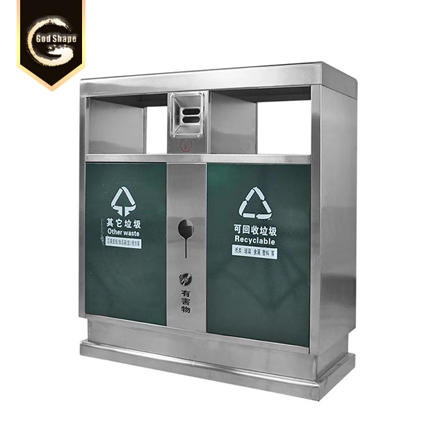 Stainless Steel Outdoor Simple Park Street Trash Can Office Apartment Trash Can Garbage Waste Dual Bin