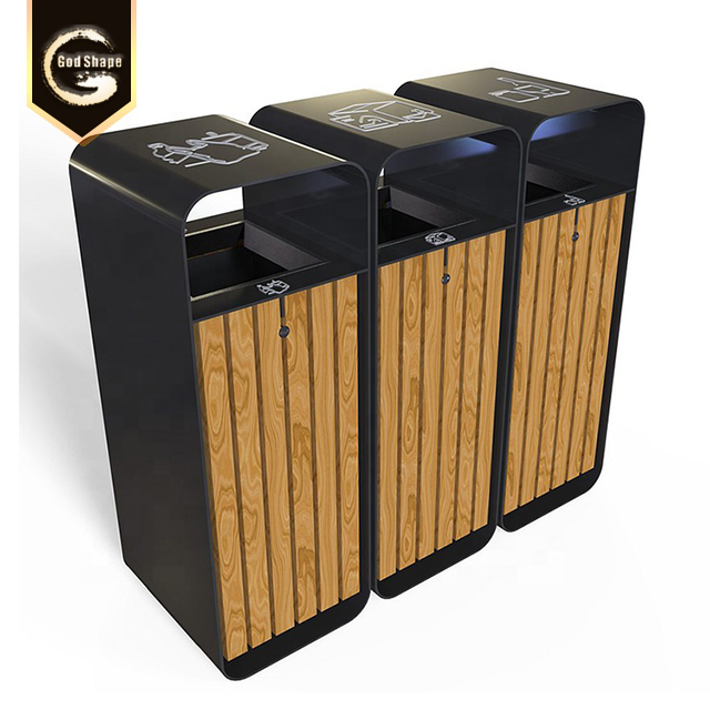 Product: views:7Outdoor Stainless Steel Triple Street Road Park Trash Can Waste Bins for Real Estate Apartment with Ashtray