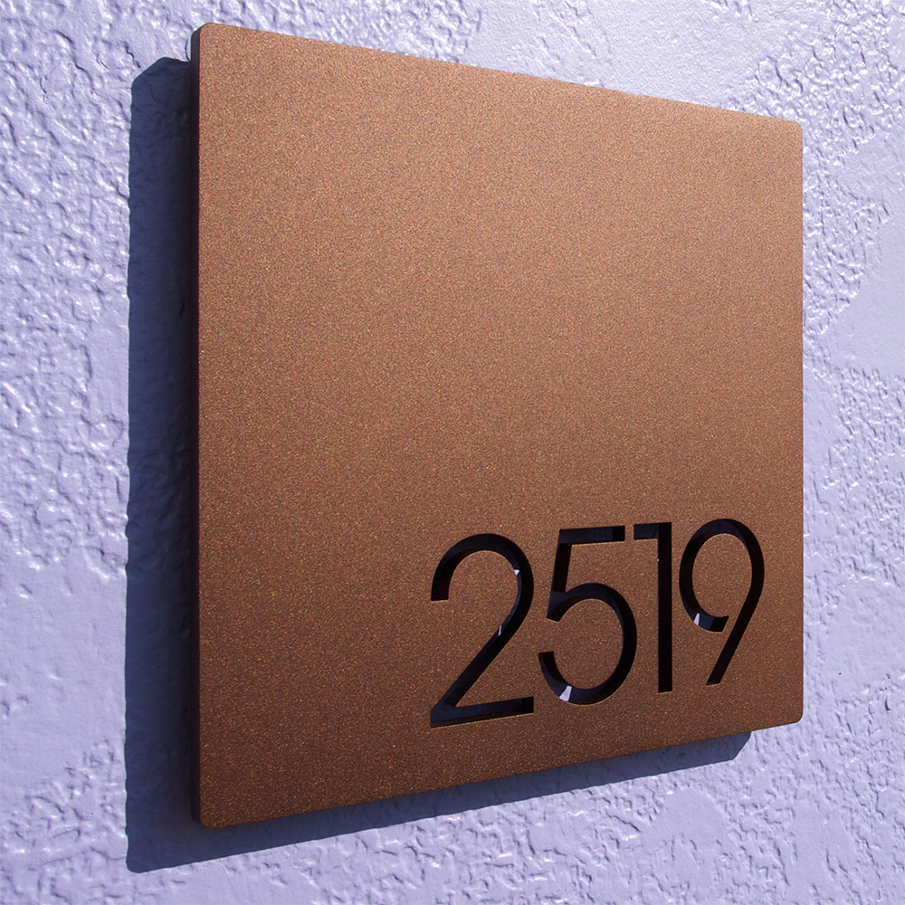 The Modern and Sleek house number sign made from 1/4" stainless steel. For 2-4 numbers.18" X 8"