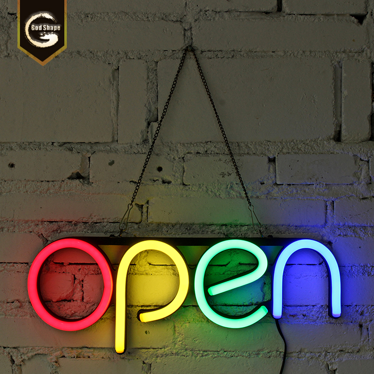 neon illuminated light sign letters led bar door hanging open neon sign
