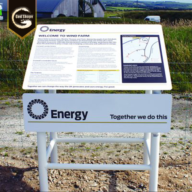 Middle size: They normally with a height of 1-3 meters. Serve as information, directory, direction or advertising. They are often installed at outside, so waterproof and long-lasting life is very important. Sometimes it will require to be movable so can be placed at different area required. The content is often silkscreen or UV printed, or if customer prefer, stickers will be used as well. When it goes to traffic industry, reflective film is widely used.