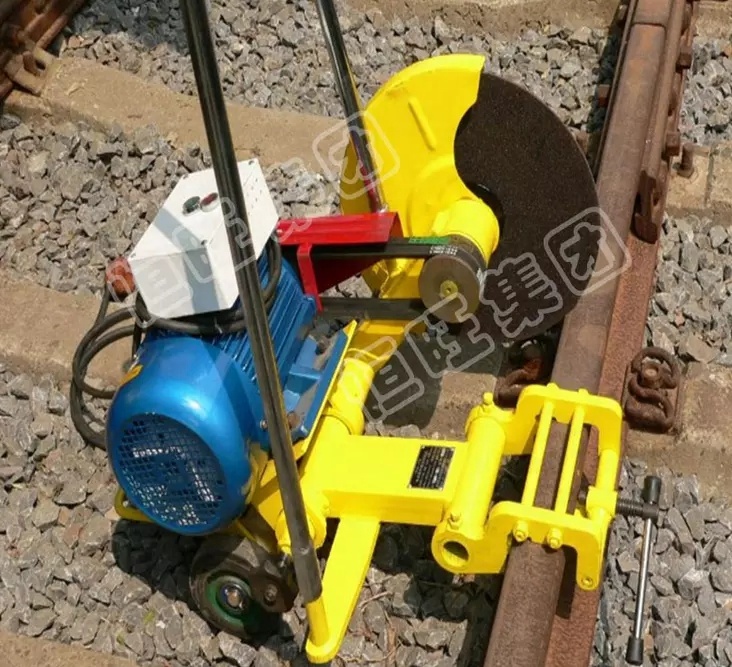 Special tool for cutting off rail in railway construction, maintenance or emergency construction. Petrol Engine rail sawing machineLinear guide portable rail cutting machine