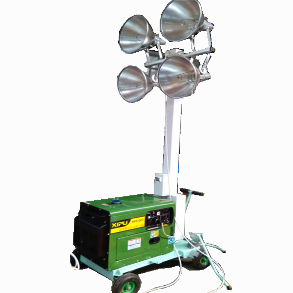 Construction lighting vehicles used for ordinary roads, highways, mines, etc. for the brightness, long-distance night operations and other work sites to provide mobile lighting. The metal halide lamp is used as the light source of the lighting vehicle, and the metal halide lamp emits light through the internal air discharge of the luminous tube, so there is no broken wire and the service life is long. The same power metal halide lamp compared with the iodine tungsten lamp, the brightness is 6 times that of the iodine tungsten lamp, the service life is 5 times that of the iodine tungsten lamp, and the power consumption is only 1/5 of the iodine tungsten lamp. 6m telescopic rod portable generator mobile flood light towers