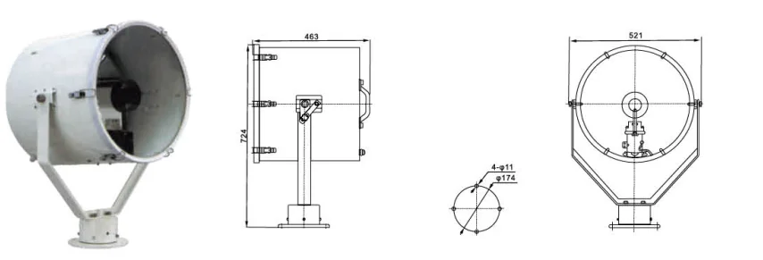 TG26-B SEARCH LIGHT | 24V | 250W | 5600 | G6.35 | Tungsten halogen light | φ10-φ12 | IP56 | 20.5kg |