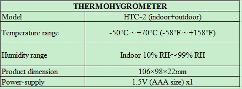Indoor+ Outdoor Thermohygrometer For HTC-2