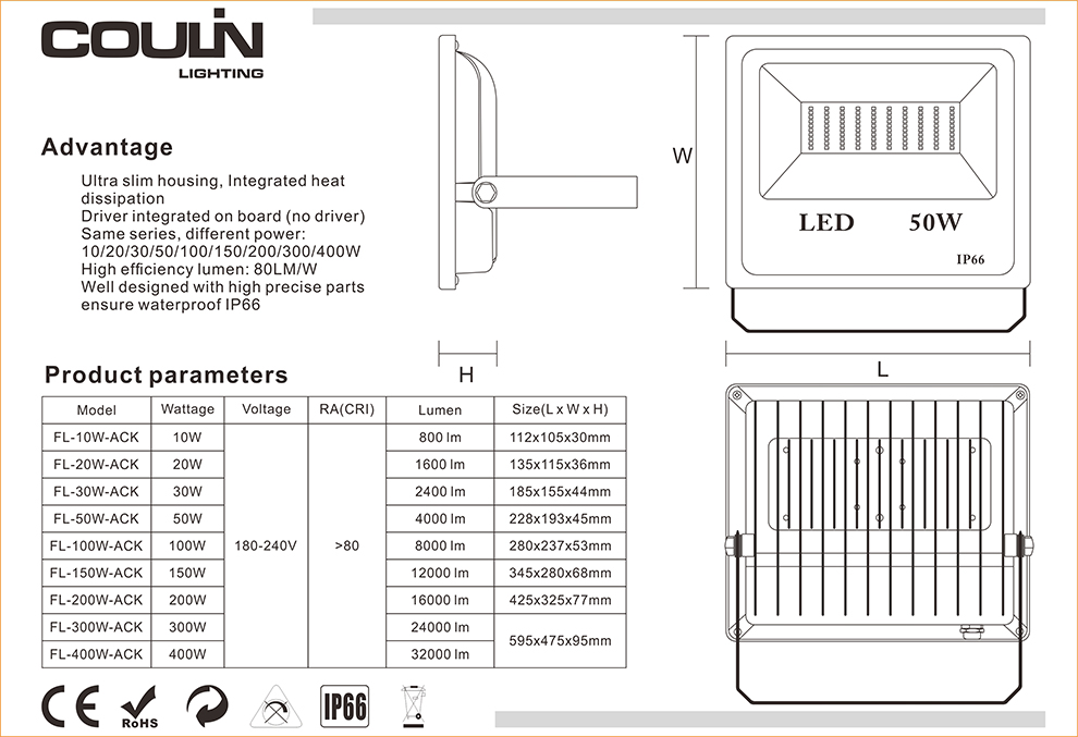 - 2018 new Coulin 400WLED Floodlight