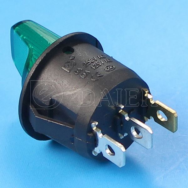 Daier KCD1-5-101NH on off miniature round rocker switch offer a high switching current in a compact design.