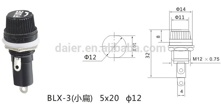 Daier BLX-2 Glass Fuse Holder Diam 12mm