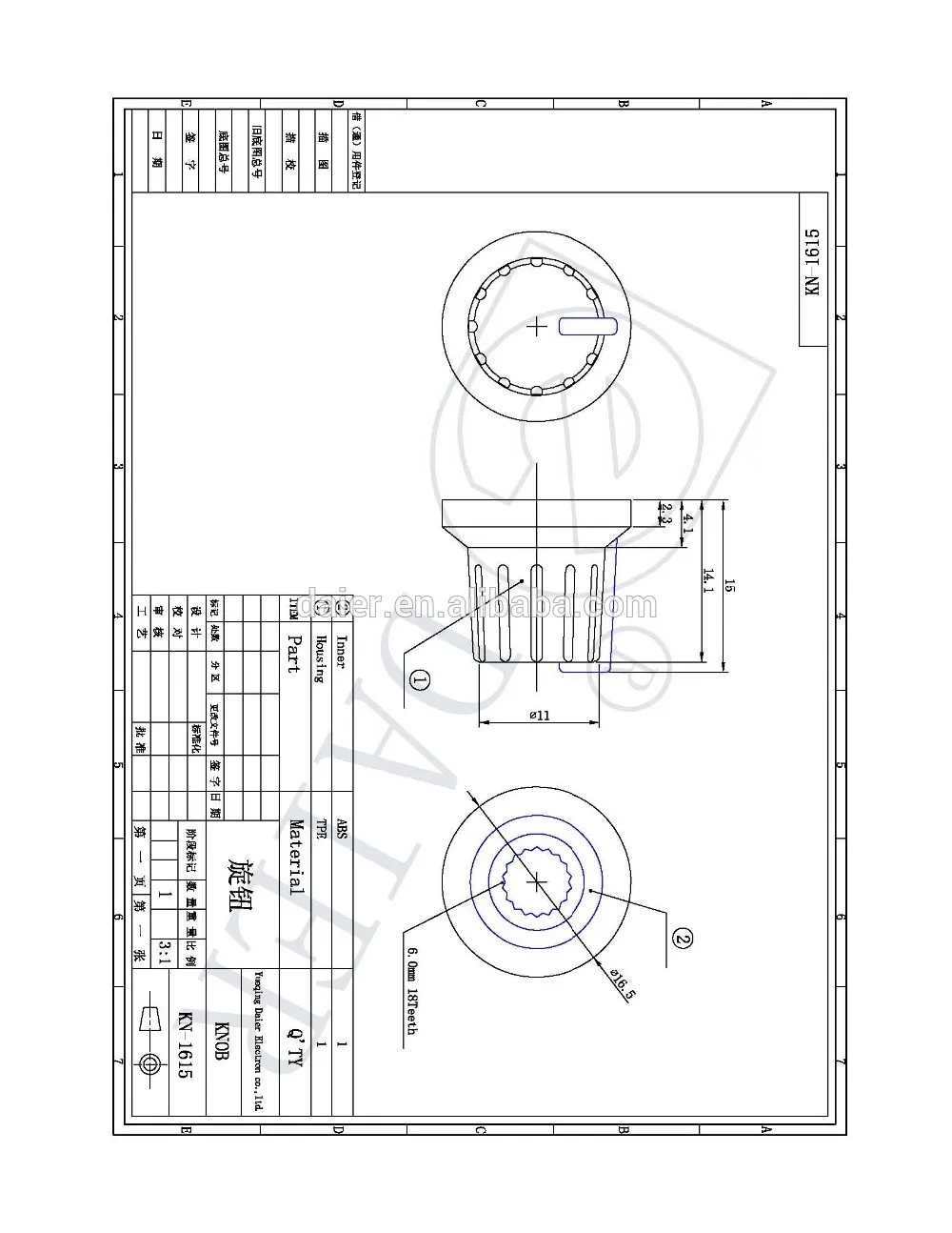 Product Name | 18T 16X15MM Knurled Grip Black Rubber Knob Potentiometer Knob | ||