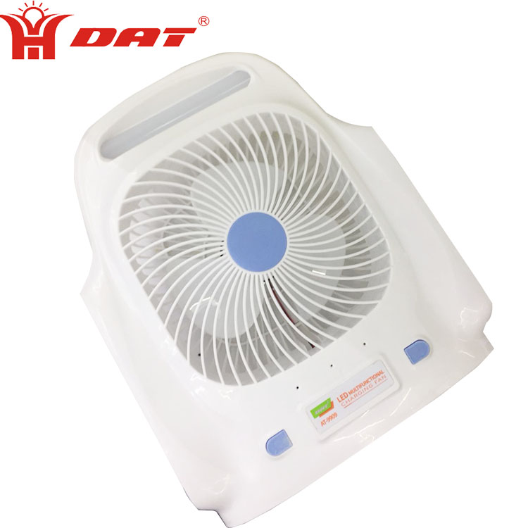 AT-9909 Factory sale electric fan with USB mobile phone charger function portable rechargeable electric fan with led light