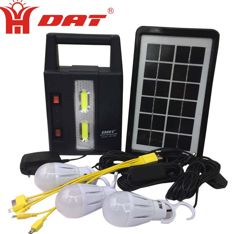 Description :AT-138 portable solar lighting system kits with three bulbs DC solar power light with 6v/4500mah lithium battery