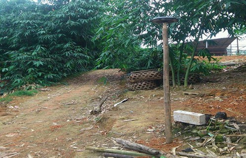 As shown below, you may use the iron pipe,wood, bamboo or PVC pipe as a lamp pole and connect the pole and lamp with the adapter, then fix the pole in a place you want.