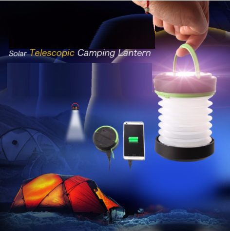 CE ROHS ABS Material Solar Led Telescopic Camping Lantern light with Power Bank Mobile Phone Charger