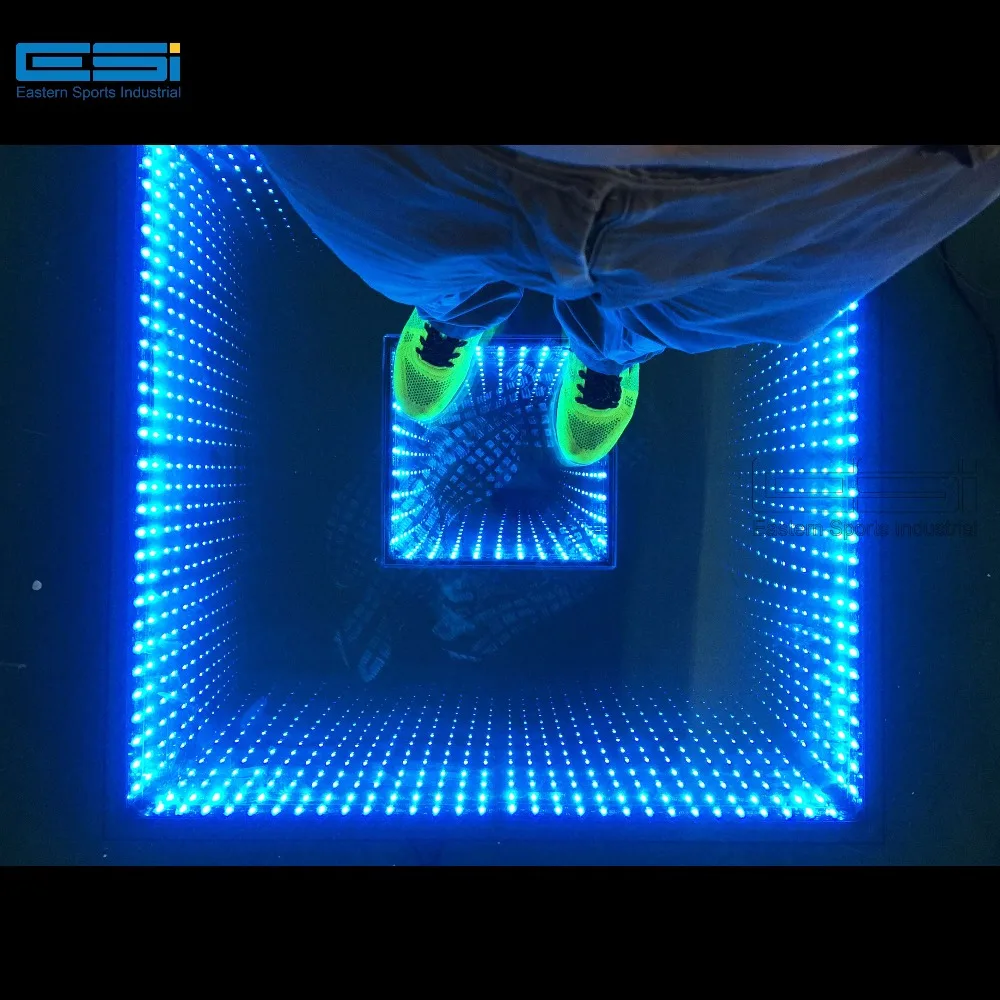 An LED array is placed inside the dance floor between the two mirrors and as animations play through the LEDs, infinity trails of light can be seen on the top of dance floor,creat the amazing 3D effect,make you feel like dance on the abyss.