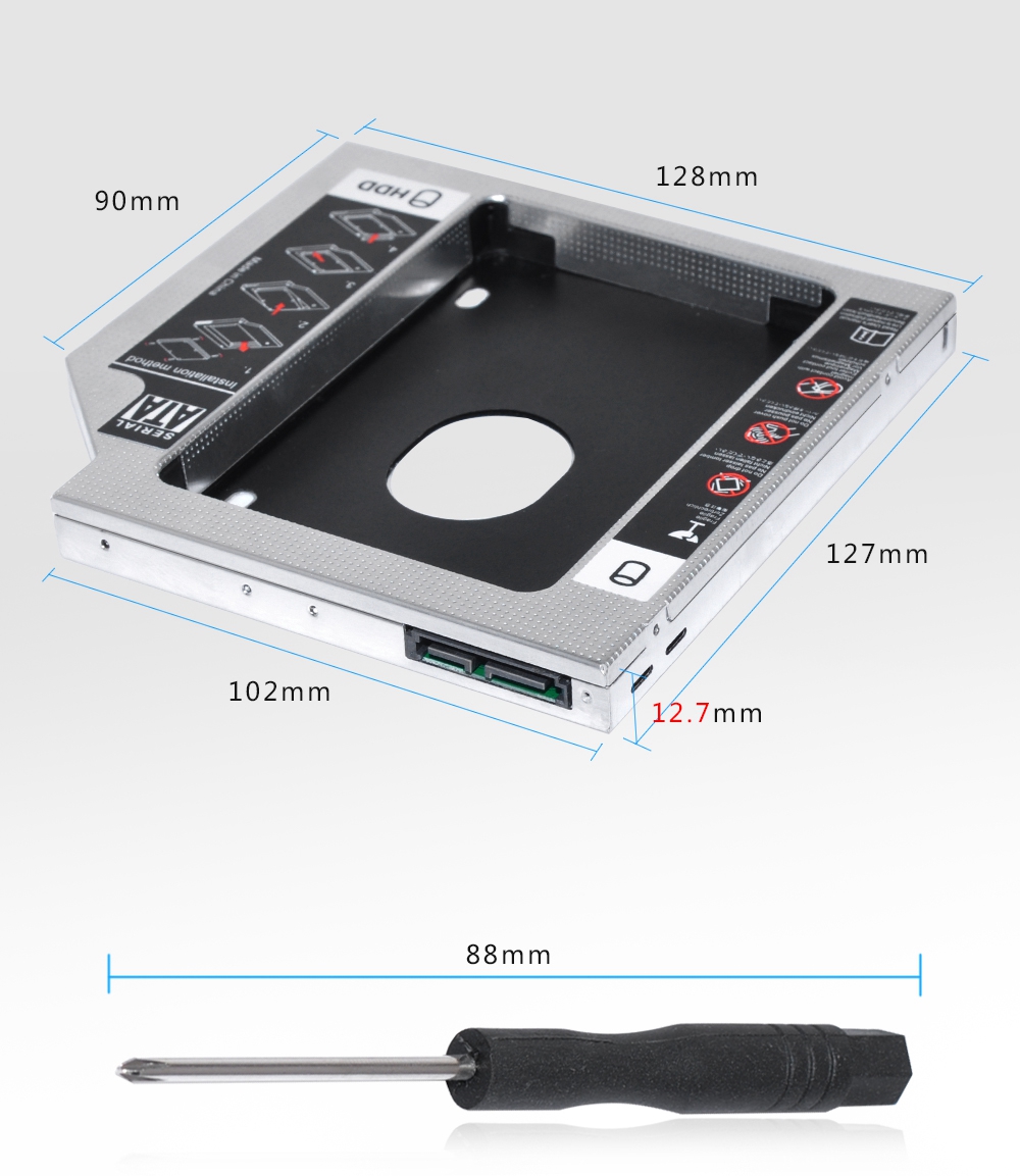 Product: views:32nd HDD Caddy 12.7mm Universal second SATA To 2.5 SSD Case