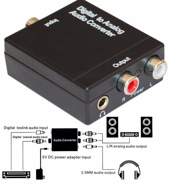 Digital to Analog Audio Converter Digital Adaptador Optic Coaxial RCA Toslink Signal to Analog Audio Converter RCA