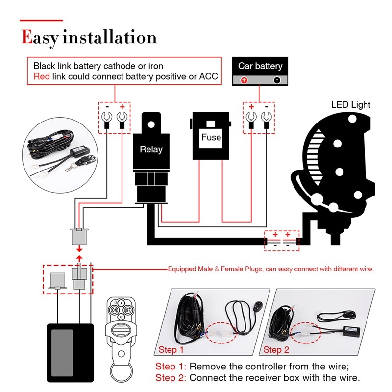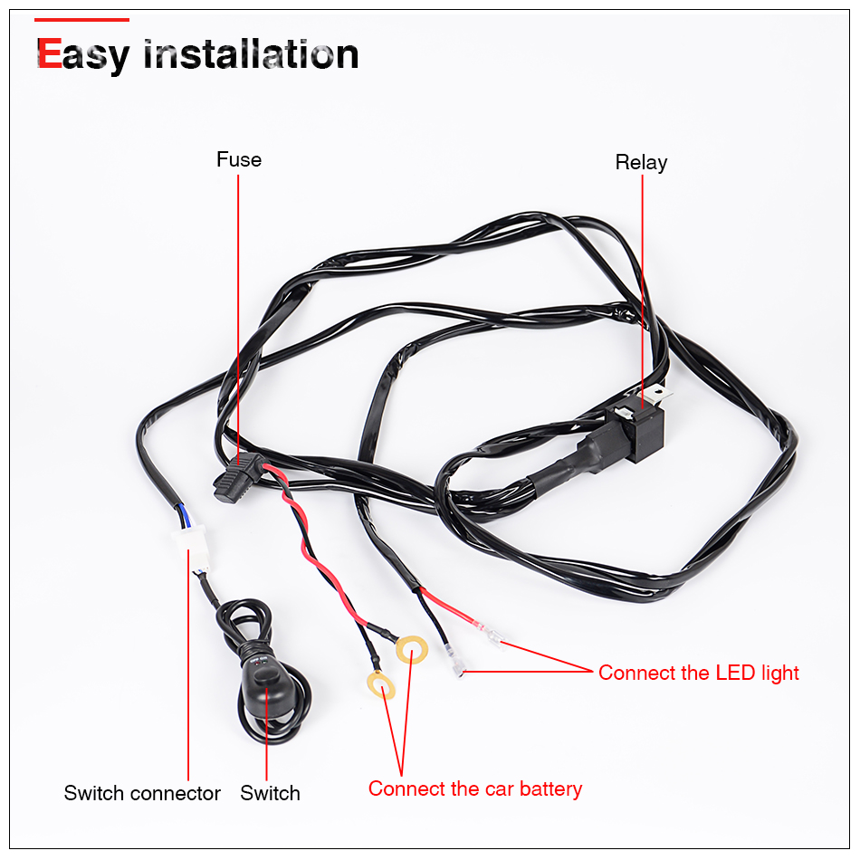 Great Construction:40A Power Relay and Inline Blade Fuse for multiple safety protection.With 1 or 2 lights output connections,it can hook with 1 or 2 led work light or 1 or 2 small watt led light bar and any else off road LEDs.