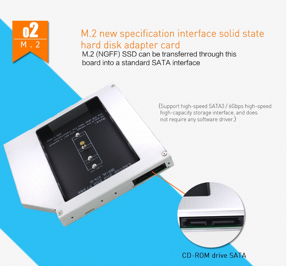 Aluminum 2nd HDD Caddy 9.5mm SATA 3.0 Optibay Hard Disk Enclosure Adapter m2 NGFF sata dvd caddy