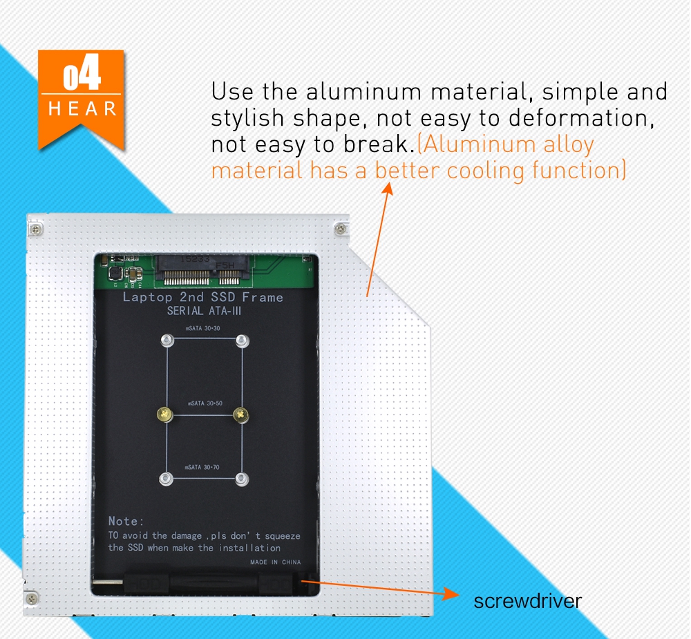 Aluminum 2ND HDD Caddy 12.7mm SATA 3 Hard Disk Driver Enclosure Adapter DVD HDD Box Case CD-ROM For Msata ssd Optibay