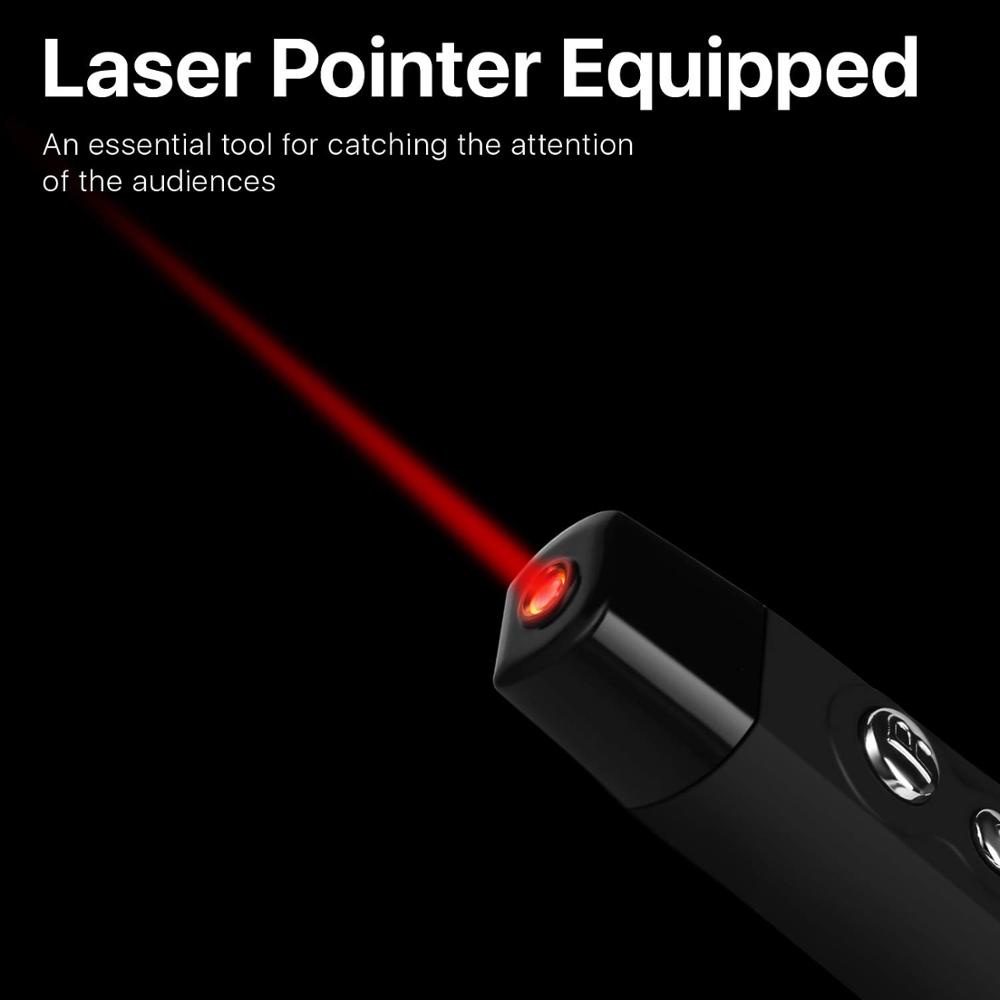 Wireless Presenter with Laser Pointer, Presentation Remote Control PPT Slides Clicker USB Dongle and Storage Pouch f
