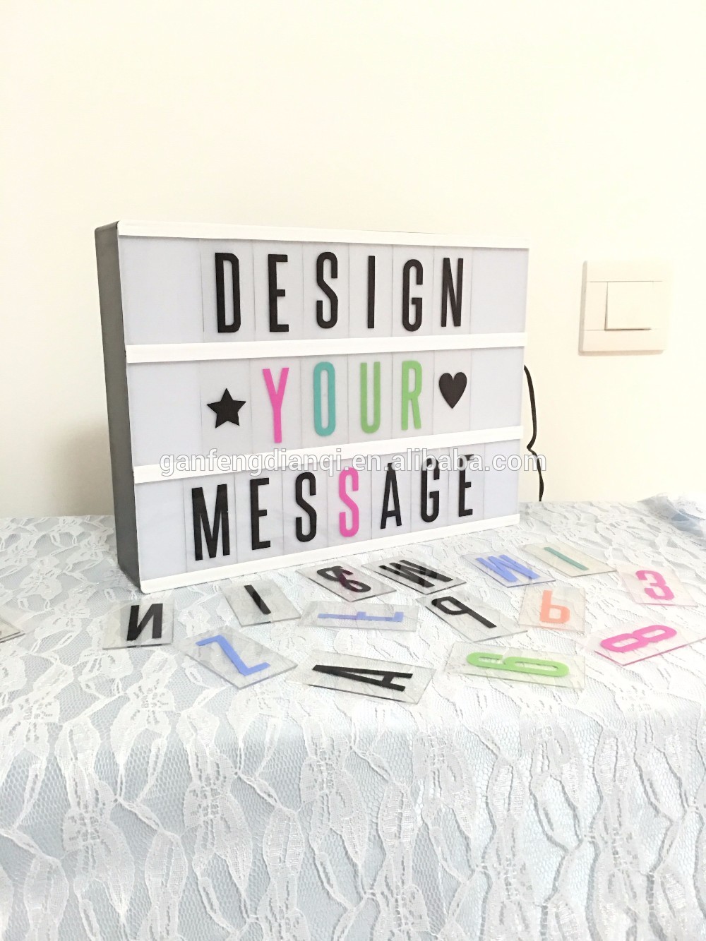 This DIY cinematic lightbox comes with 85 interchangeable acetate letters, symbols and numbers,so you can have your favourite film/person/motivational quote up in lights. There are three rows so there"s plenty of room to play with.