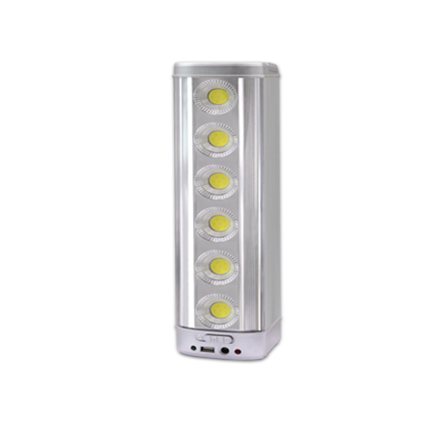 1) Aluminum Housing(New) 2)6 pcs of 3W High Power COB LED light on the body 3) Auto-off function (when the power failure,the LED light can automatically turn on) 4) 10 hours for "high" light ; 15 hours for "Lower" light 5) Recharging time : 20~25 hours 6) Dimension:(L*W*H)79*88*326 mm 7) Transformer charging, overcharge protection 8) 12V DC car charging, solar charging is available 9)Handle, Wall Mounted 10)Can be with external adapter Lumens:800lm Wattage:18Watts |
