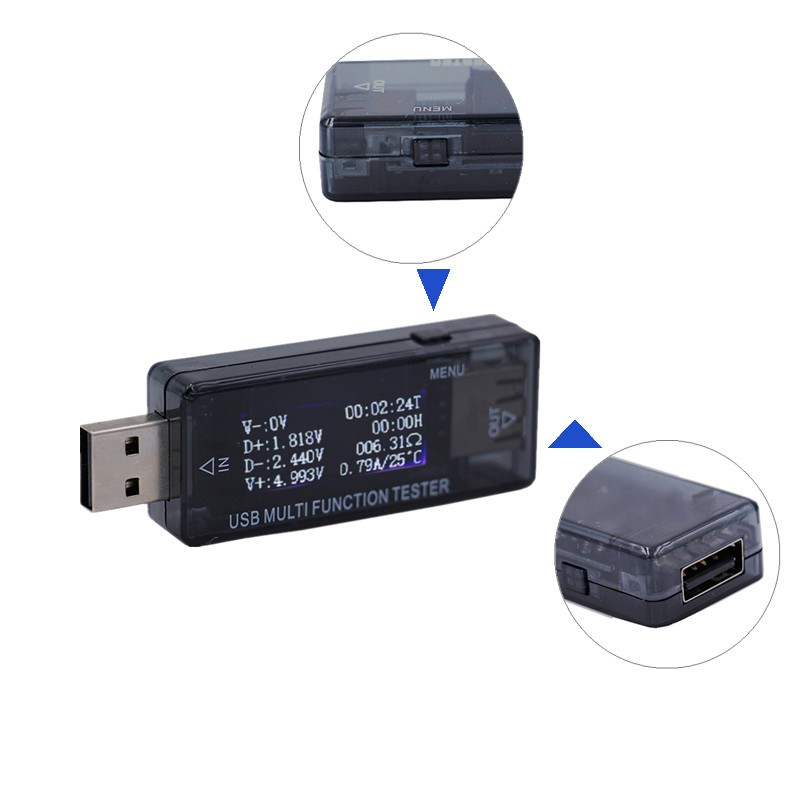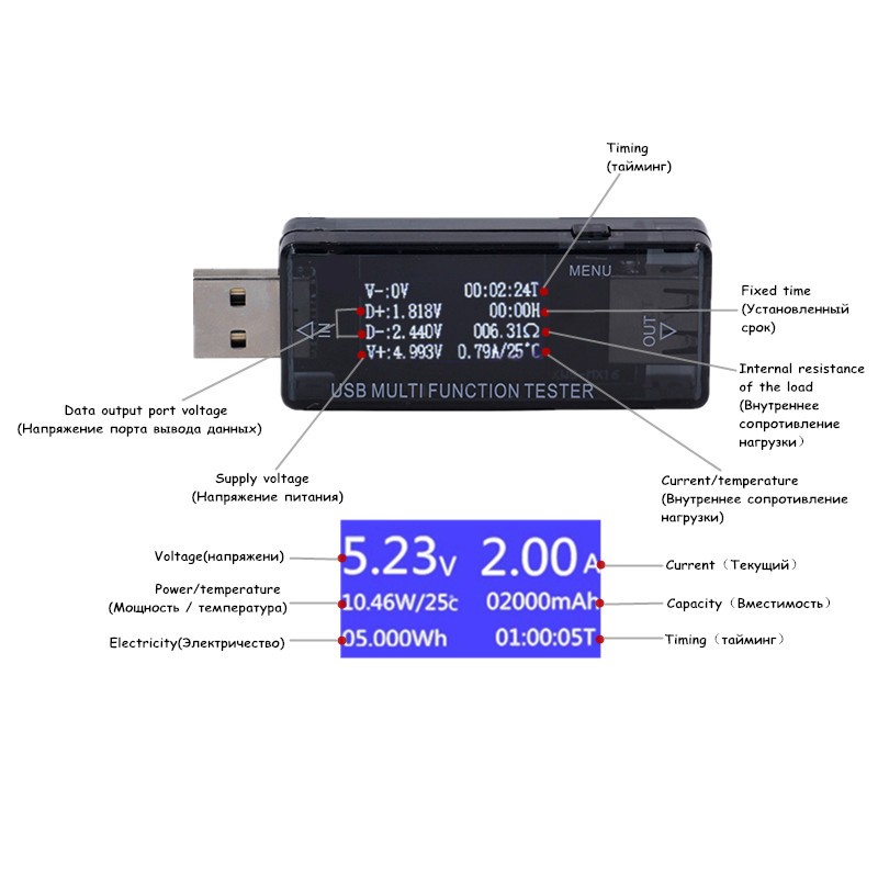 This test can be a USB load current, voltage, discharge capacity, the amount of electric charge, energy, timing, intelligent devices.