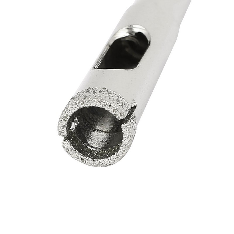 This diamond coated core drill bit removes a complete circle from glass, tiles, marble, granite, ceramic or other