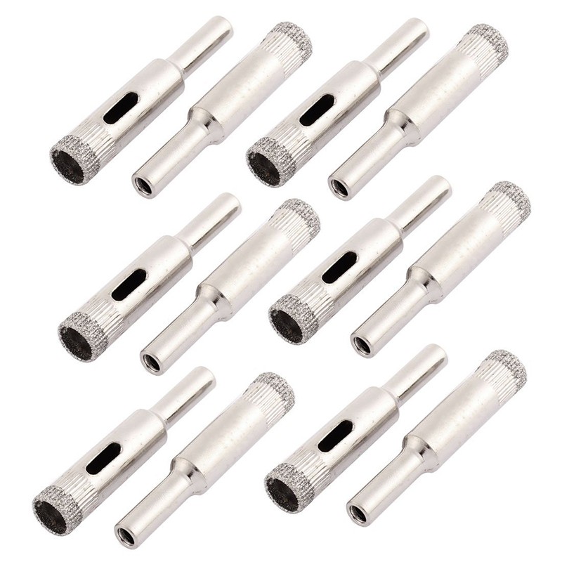 10pcs 10mm Dia Diamond Coated Drill Bit Marble Tile Glass Hole Saw Cutting Tool