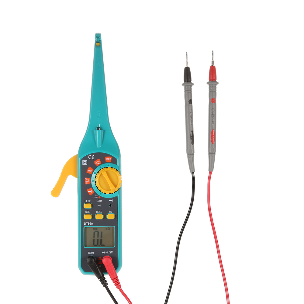 Useful car circuit tester with unique test hook can accurately and quickly measure the internal problem, voltage and signal from the surface. LCD display with backlight, convenient to use at night.
