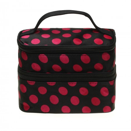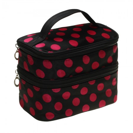 Women Makeup Cosmetic Beauty Toiletry Bag Case Pouch Handbag Dot Double Layer