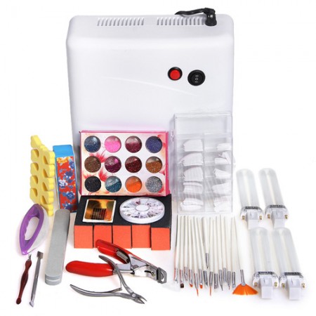 16 Pcs Nail Art Dryer Machine+Acrylic Powder Glitter Tip Brush