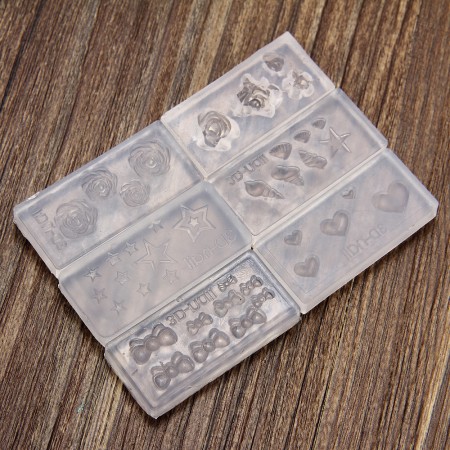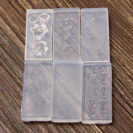 6Pcs Fashion Durable 3D Acrylic Mold for Nail Art DIY Decoration Silicone Design