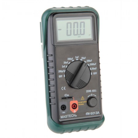 MY6013A portable digital capacitance meter PREFI = O FeaturesEasy portable 3 1/2 digital capacitance meter, measure the capacity of the capacitor, Compact eternal zero setting knob, convenient for users to adjust to zero. Technical parameters Capacitance measurement: 200pF/2nF/20nF/200nF/2F/20F/200F 0.5% 2000F 1.0% 20mF 2.0% LCD screen: 30 60 mm Power supply: 9V (6F22) 1 Dimensions: 91 189 45 mm