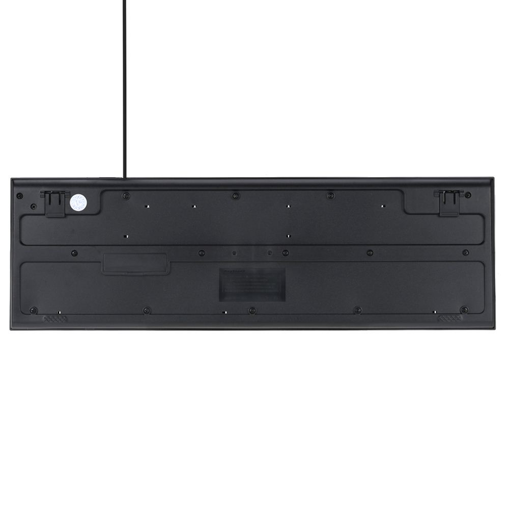 104-key full size layout, two-tone black plaid, fashionable high-class office equipment. Good sensitivity and tactility, make it perfectly suitable for gaming as well. Besides, its details are given much thought--- tiny hole design on the bottom for accidental water spill, ergonomic feet design for comfortable use. All conducive to improving both productivity and comfort during working.