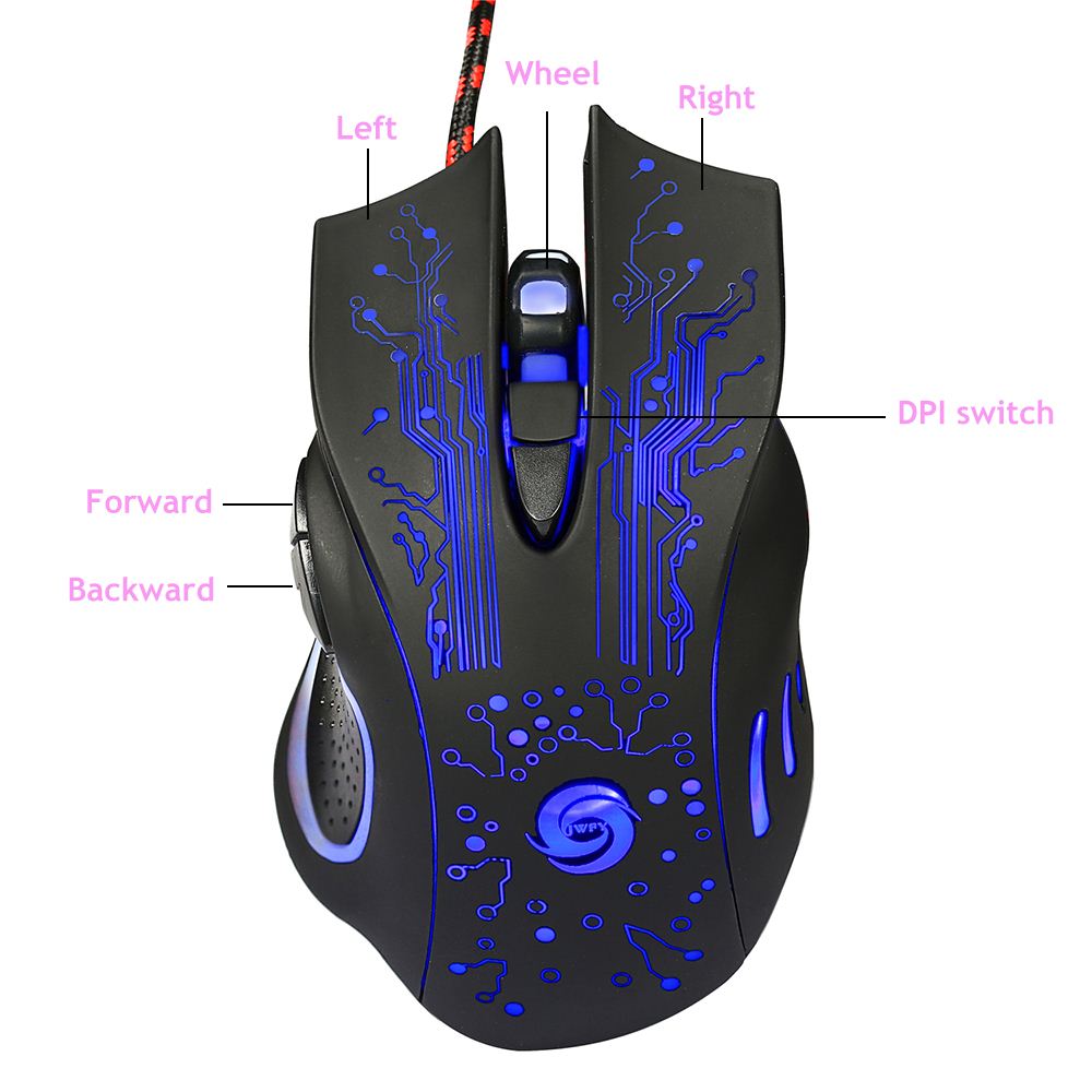 Professional USB Wired Gaming Mouse 5500 DPI Adjustable Optical Computer Mouse Mice with 6 Buttons LED Light Mouse for PC Laptop