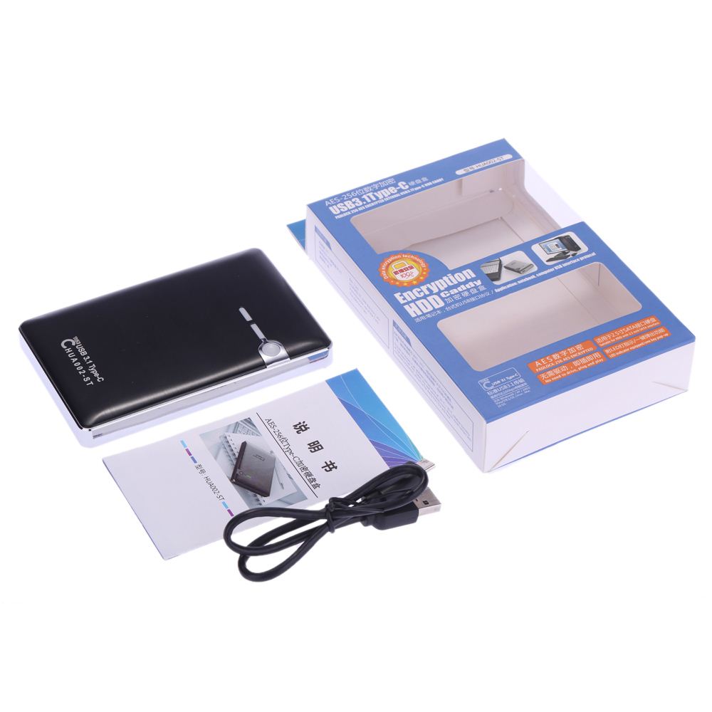 The SATA enclosure is designed to covert 2.5" SATA SSD to USB 3.1 interface, with data transfer rate up to 10Gbps, and provide secure storage of your valuable data. Besides, the Type-C reversible connector spares you the trouble of checking the connector orientation. Easy to use, no driver required, one key pop-up, hot swap supported, it is convenient and user-friendly. Furthermore, it adopts advanced AES digital encryption, which highly secures your data. its solid aluminum alloy shell and handy and portable design make it stand out.