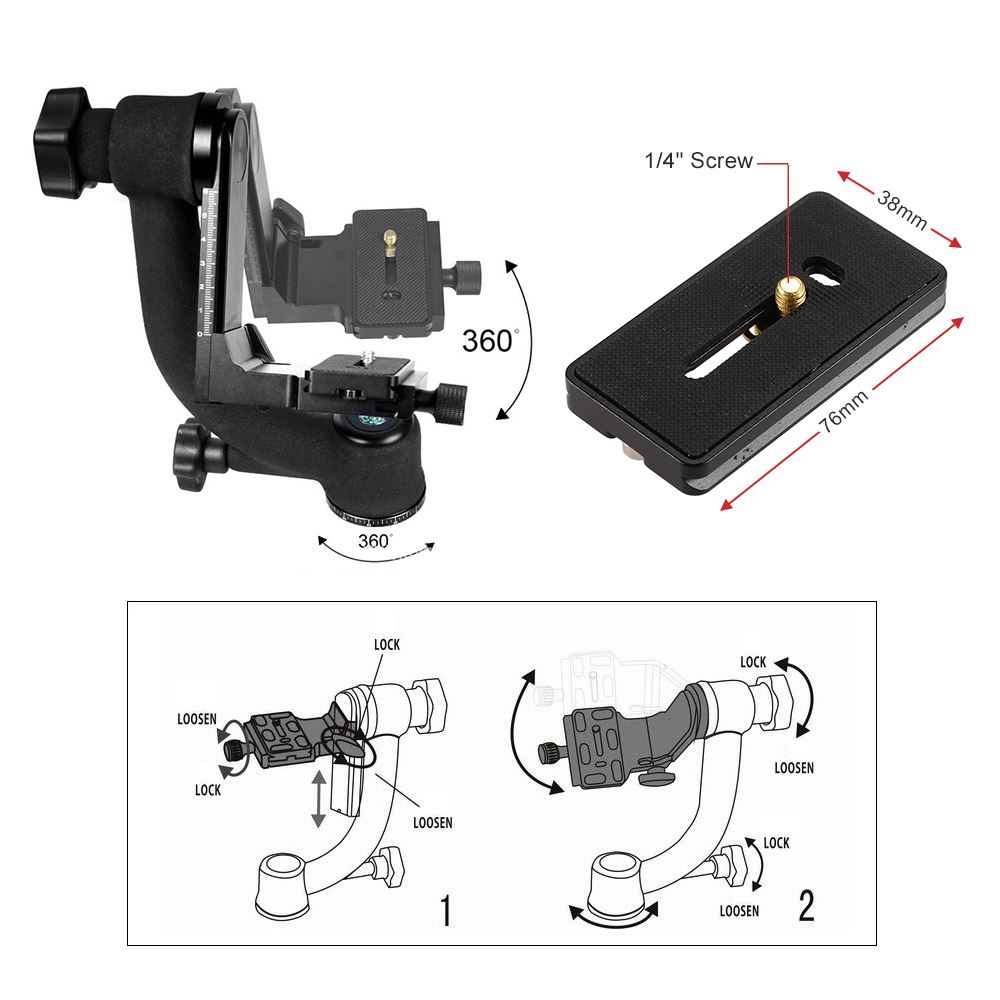 Heavy Duty Metal Gimbal Tripod Head for DSLR Camera Telephoto Lens with Standard Quick Release Plate (Max.Load to 20kg / 44Lbs) Product Details total0items Comments |