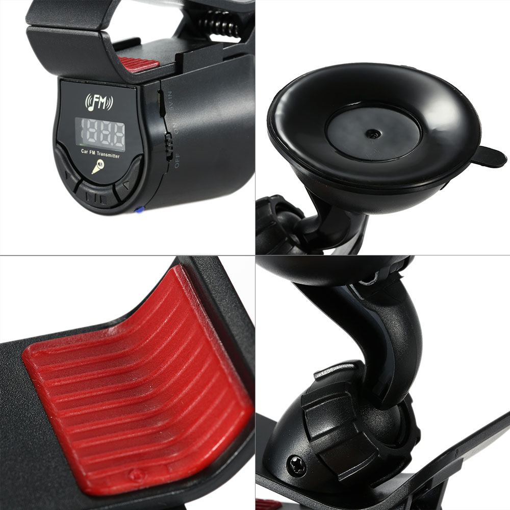 FM-09 Vehicle Phone Holder 360 Rotating Clip AUX MP3 Player FM Transmitter Car Charger Handsfree with Microphone Speaker for all
